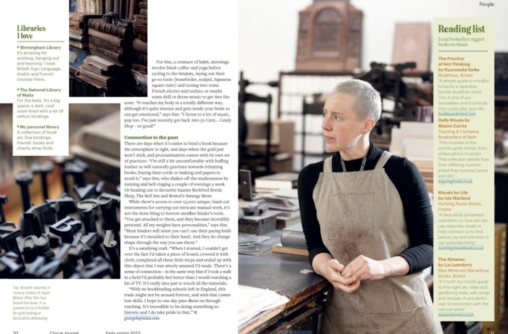 Bookbinder feature for Circus Journal rituals issue